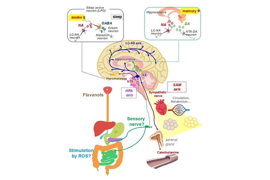 (Image credit: Dr. Yasuyuki Fujii).“As a result, it is thought that flavanol stimulation is transmitted via sensory nerves to activate the brain, subsequently inducing physiological responses in the periphery through the sympathetic nervous system.”